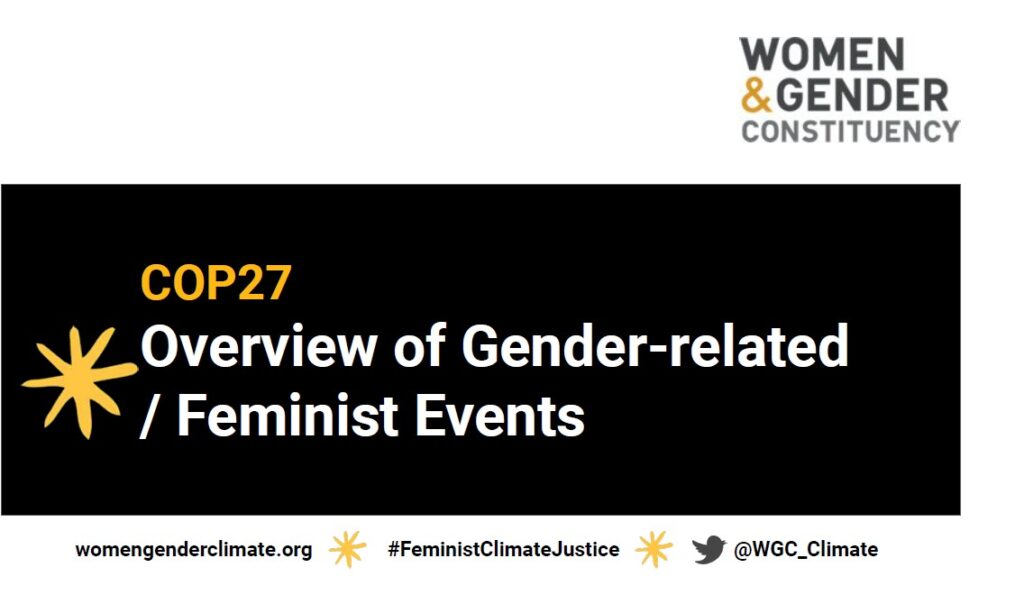 Produced by the Women & Gender Constituency, this events list contains gender-related events at COP27. The list is organized by date and time. All times are in local time.