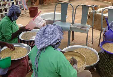 Targeting specific sectors and voluntarily promoting equal opportunities in apprenticeship allowed the strong participation of women entrepreneurs (45%). Alternative manufacturing processes also aim to reduce the drudgery of tasks and improve safety and security, especially within hazardous or polluting operations often delegated to women. Examples: the HAFFAAC oil mill replaces wood combustion with cashew hulls from ANATRANS (pyrolysis system); PTMSA exchanges its maize leaves and stems for manure from Atelier EC, a non-polluting and safe fertilizer.