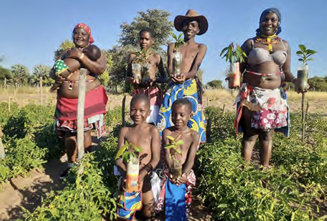 To address the needs of pastoralist Ovazemba communities in Otjiyandjamwenyo village in Namibia, facing recurring droughts with loss of livestock, The Marginalized Mirror supports culture-led, gender- responsive planning and implementation of regenerative agriculture. Knowledge sharing sessions on vermicompost, crop rotations, permaculture and drip irrigation were organised. A vegetable garden was set-up and managed by women and youth, producing organic healthy food. The project champions indigenous people’s rights for self-gover- nance, independent decision making, and peer-to-peer learning. Working with community leaders, this initiative provides daily meals to orphans, the elderly, and disabled individuals.