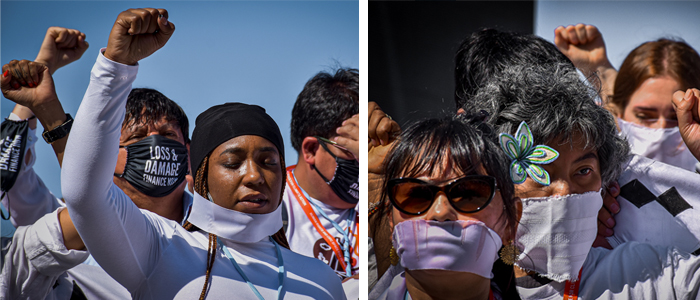 “This is how power is operating on this planet, as the polluters loot the Earth, rape the Earth and other peoples’ bodies – but we will not let them do it quietly,” said Dipti Bhatnagar of Friends of the Earth International. “This is about 500 years of genocide and colonialism and slavery, and none of our ancestors went down without fighting.”