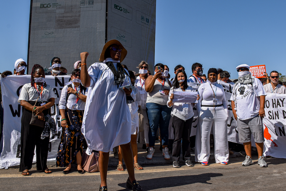 I’m speaking on behalf of women environmental human rights defenders in our countries and our region in Asia and the Pacific. It is so hard to come here [to COP], and I’m speaking here to bring their voices,” said Ana Gabriela Celestial, of APWLD and Asia Pacific Network of Environment Defenders. “And back home we are being harassed, silenced, criminalized because of our defense of our homes, our livelihoods, our environment. Even in the halls of COP27, they are afraid when we speak truth to power about false solutions and greenwashing schemes.”